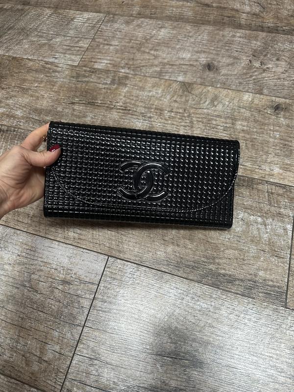 Клатч кошелек. 5 отделов внутри , один из них на молнии, одно отделение для карточек, один снаружи. Очень удобная сумочка. Натуральная лакированная кожа. Состояние отличное. Ремешок -цепочка отстегивается или можно спрятать внутри. Подойдет и для вечера и на каждый день.