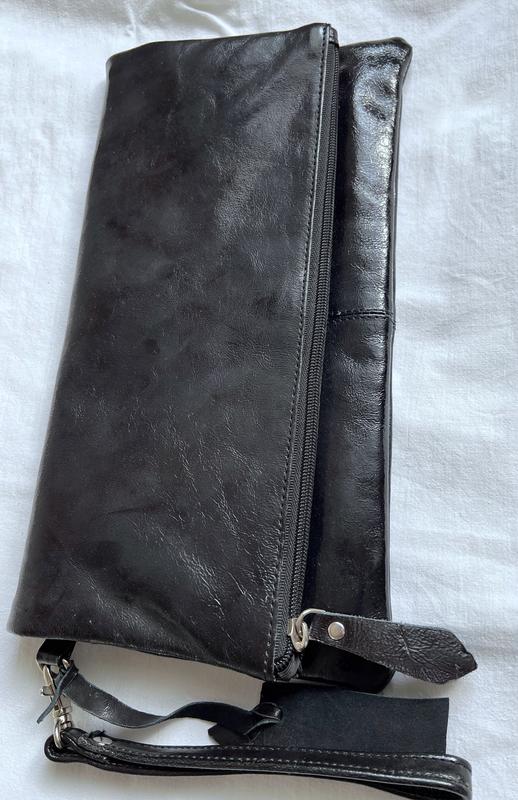 Чорний шкіряний клатч. Підходить для вечірнього виходу або офіційної події. Стан гарний, є декілька невеличких затертостей (1-2 мм) Якість дуже гарна. Вмісткий Довжина- 31-31,5 см Ширина у складеному форматі - 16,5-17 см Відправка НП чи УП (передоплата 100 грн)