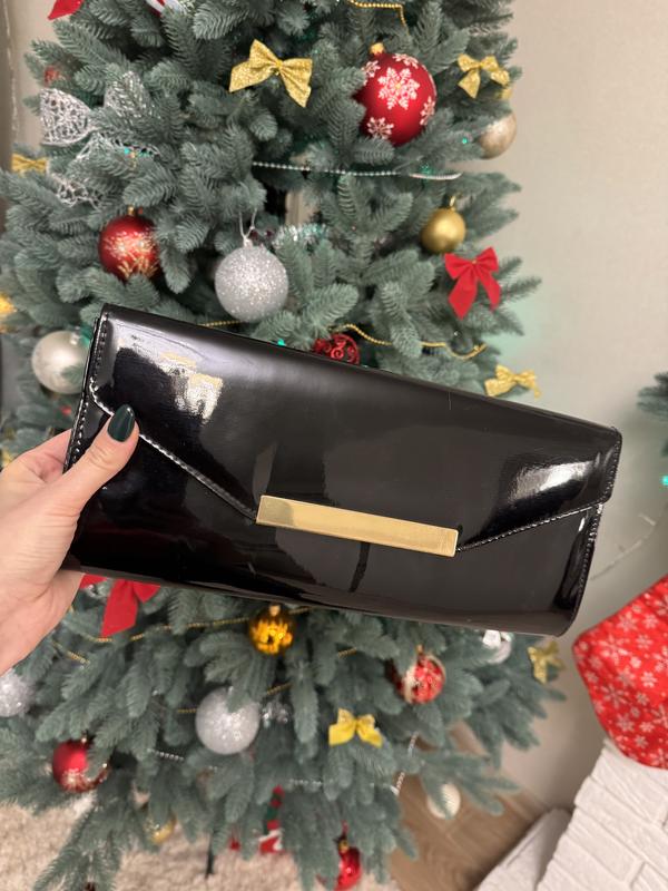 Лакова вечірня сумочка з одним відділенням. Підійде для святкового образу, корпоративу або вечірньої сукні. Фурнітура золотого кольору, довгий металевий ланцюжок. Компактна та зручна.