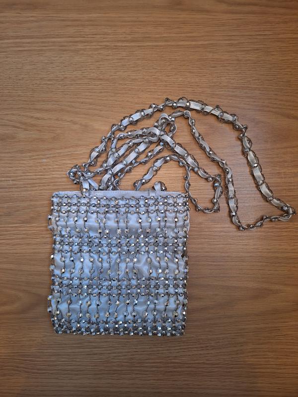Вечерняя женская маленькая сумочка из бисера и бусенок с длинными ручками