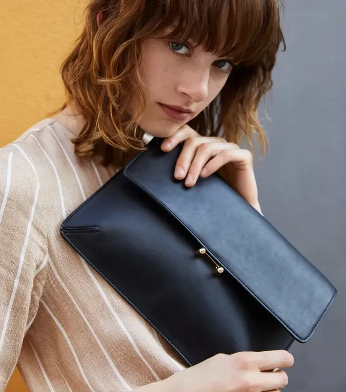 Стильный клатч без лишних деталей, изысканный и организованный! Бренд: Mango Цвет: черный Материал: кожзам