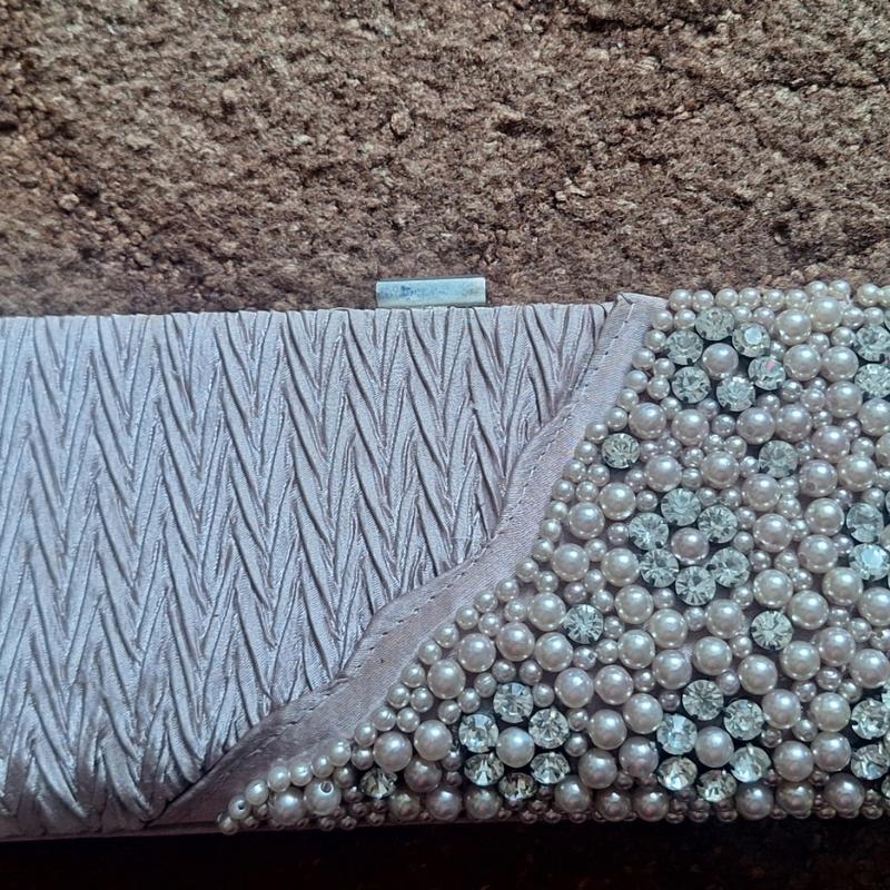 Клатч сумка два ланцюжки короткий і довгий колір пудра.