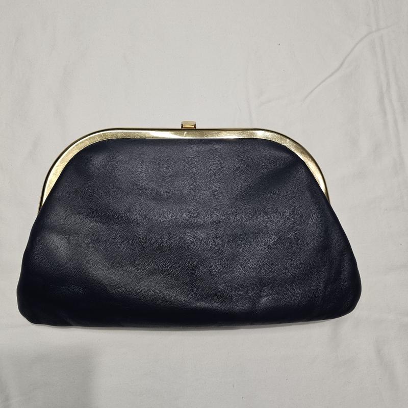 винтажная сумка из гатуральной кожи в цвете Navy, размер 16×26 После ркставрации