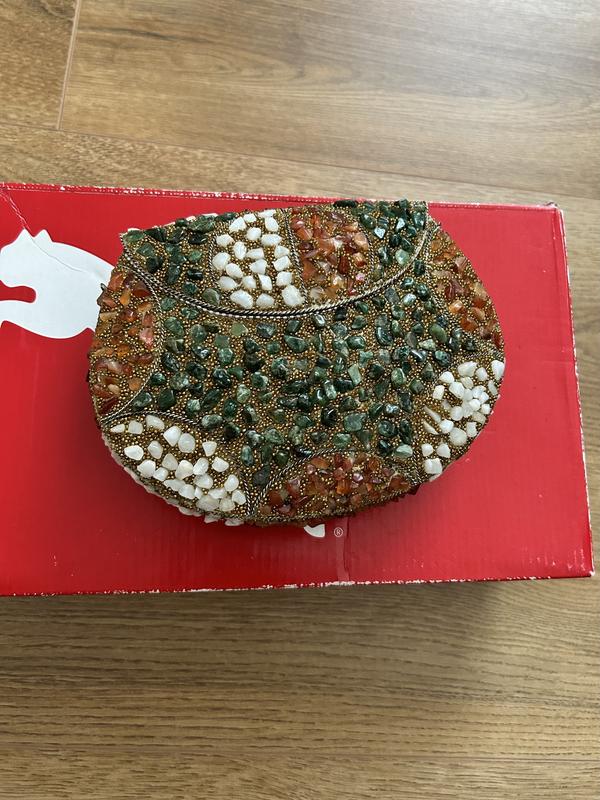 Унікальна клатч-сумочка, яка неодмінно приверне увагу та стане вашою улюбленицею серед аксесуарів! Ця річ — не просто сумка, а справжній витвір мистецтва ручної роботи. Її металевий корпус прикрашений чудовою мозаїкою з натурального каміння,створюючи неймовірну гру світла та кольору, яка підкреслить ваш унікальний стиль.Кожна деталь цієї сумочки продумана до дрібниць: від оксамитового внутрішнього оздоблення, яке дбайливо захистить ваші речі.Вона ідеально підійде для вечірнього виходу, міського заходу або романтичної вечер. Ця сумочка не тільки підкреслить вашу індивідуальність, а й стане предметом захоплення оточення. Візьміть із собою все необхідне — телефон, помаду, гаманець — і блискуйте на будь-якому заході Розміри: 14 см висота,18 см ширина,