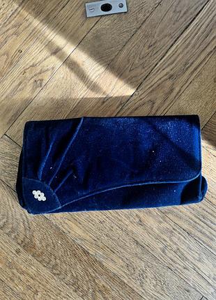 Оксамитовий клатч глибокого синього кольору. З декоративною брошкою кришталиками.
