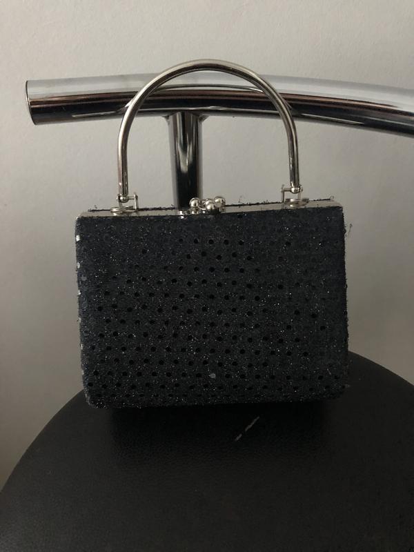 Чорна сумочка з маєтками та залізною ручкою Можна причепити довгу на плече Висота 14см,ширина 16см