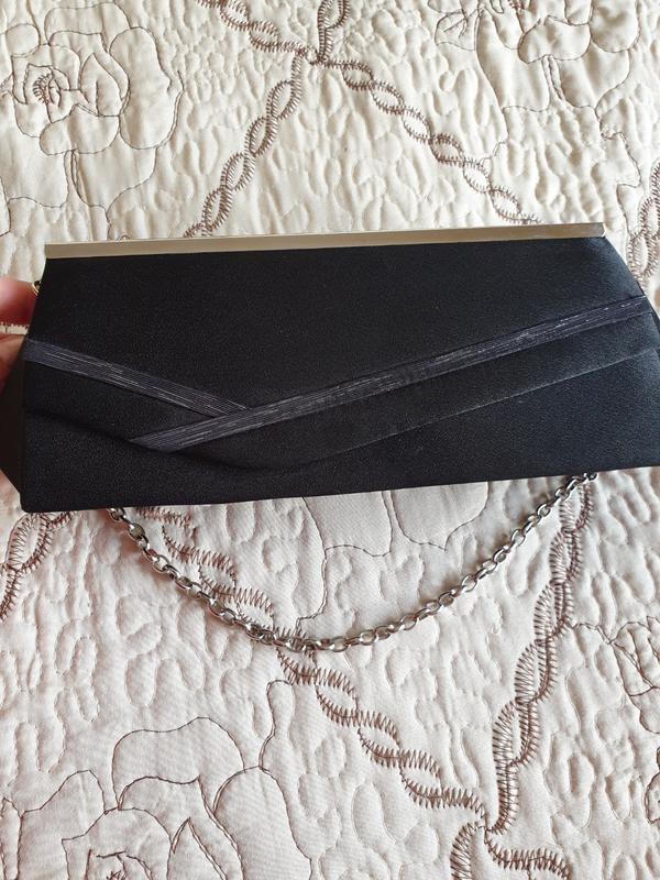 Клатч чорний Iber Bolsos,з красивою обробкою спереду, одне відділення і кишеня для дрібниць. Ланцюжок знімається Матеріал верху текстиль. Внутрішній матеріал текстиль Візерунок: Смужки Застібка: Кнопка-магніт Внутрішні кишені: 2 Колір фурнітури: Срібло