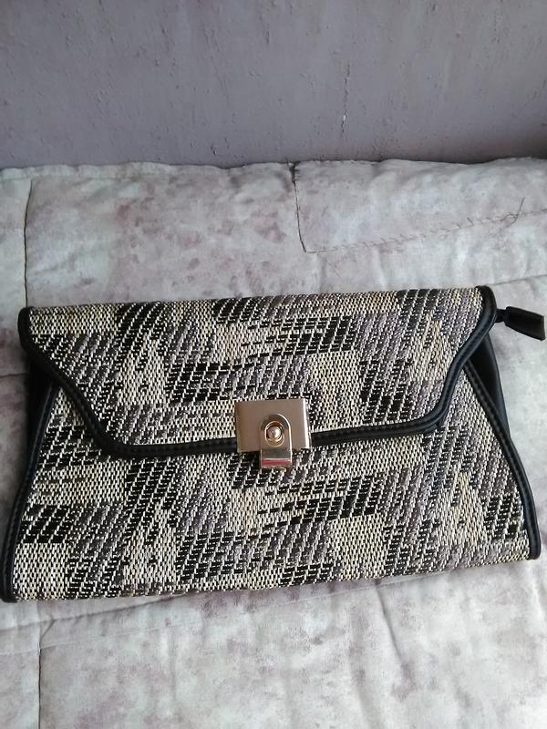 Новый клатч. Размер 31*18см. Верх похож на солому с переплётом. Внутри маленький карманчик с замочком и два карманчика без замков.