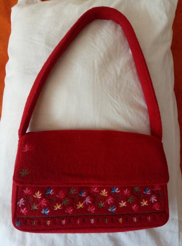 сумочка клатч,красного цвета,материал флис,вышивка,на магнитной кнопке,подкладка атлас розового цвета.Длина ручки 67 см,ширина сумочки 27 см,высота 17 см