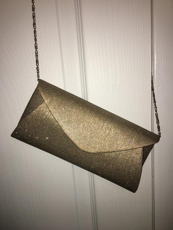 Очень красивый золотистый клатч на цепочке.Носили всего один раз.Внутри подкладка из глянцевой ткани.Состояние 10/10.