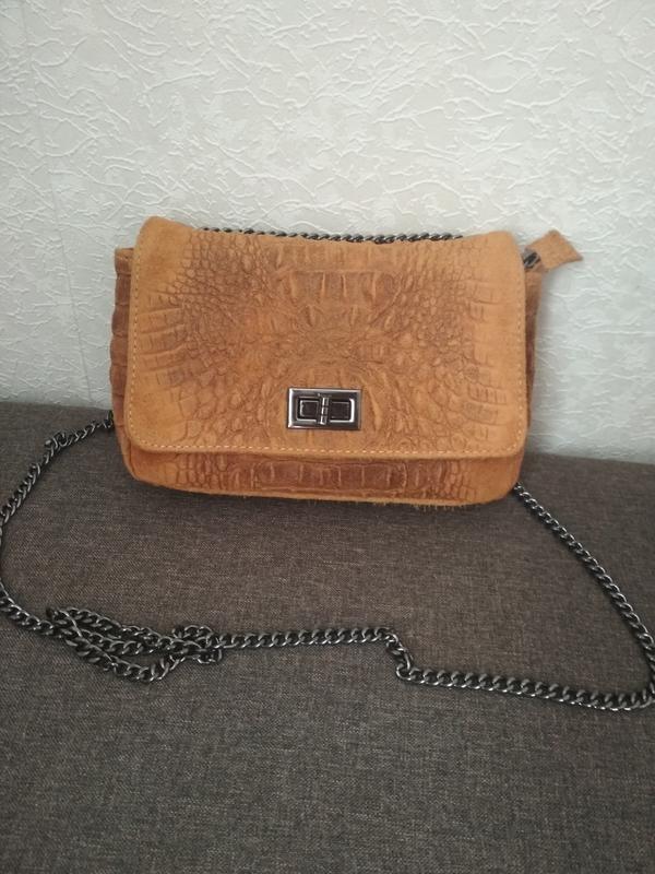 Клатч на цепочке, внутри два отдела, один на змейке.