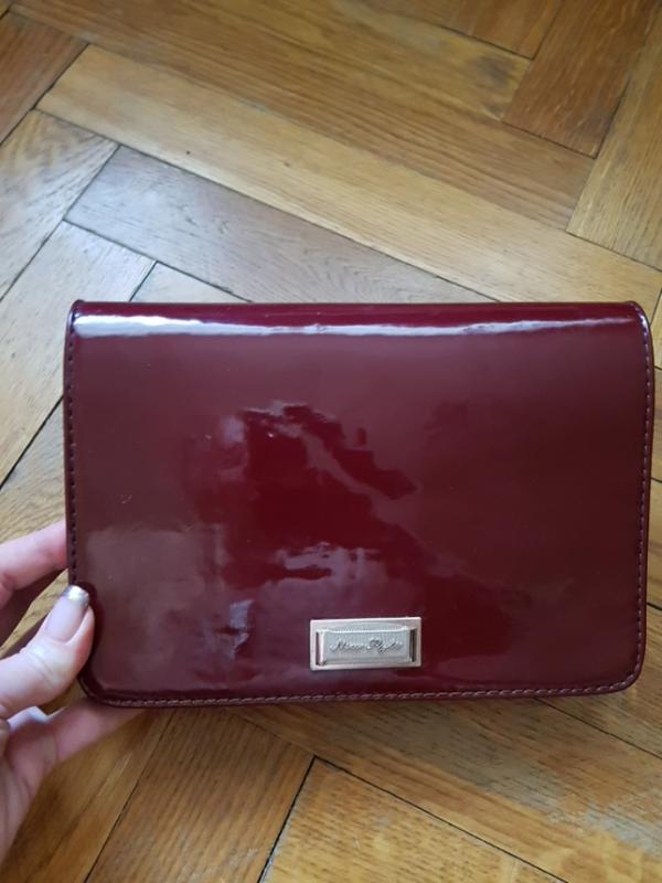 лаковая сумочка- клатч с пристегивающейся длинной ручкой. размер 23х16х6. внутри 3 отделения (1на змейке) плюс боковой карман. цвет 1 фотографии точный.