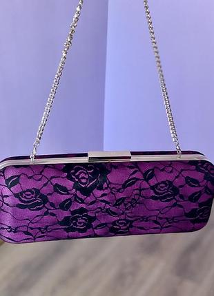 Оригінальна сумка-клатч, зверху - чорне мереживо. Довжина - 32 Висота - 13 Довжина ланцюжка - 67
