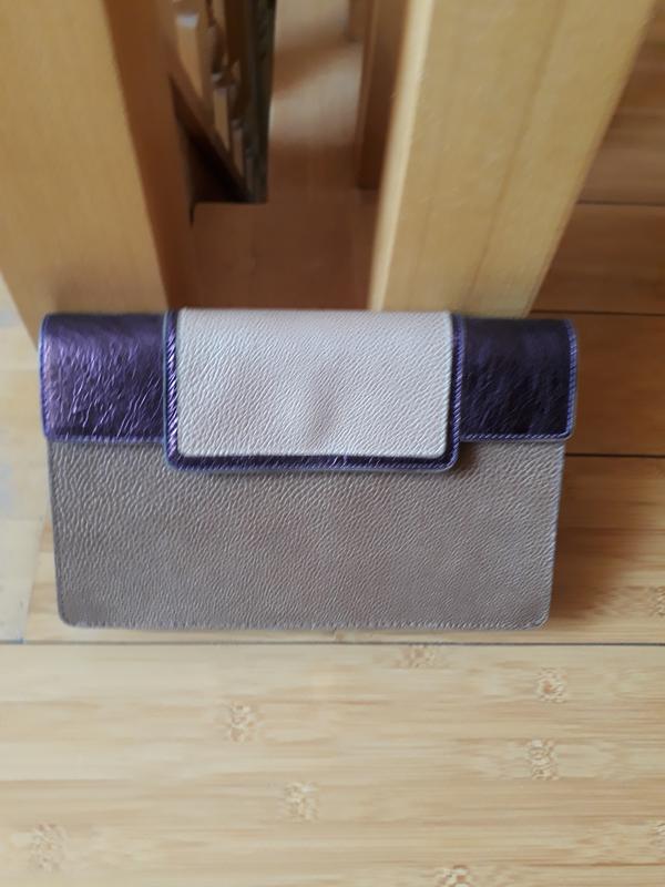 Клатч с приглушенным блеском на кнопке. Внутреннее отделение с карманчиком. Бирка отсутствует. Новый.