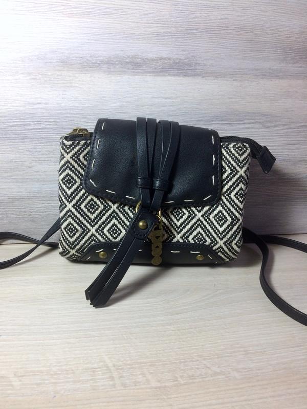 Стильная сумочка с множеством отделений и карманчиков. По функциональности можно использовать как кошелек. Длина 18 см, высота 13 см.