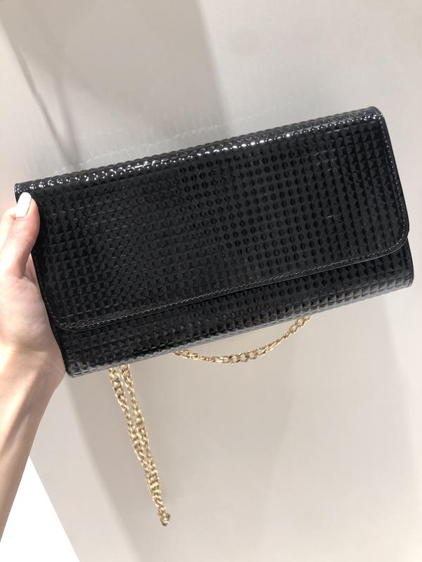 Чёрный лаковый клатч с золотой цепочкой, очень классное качество, смотрится стильно и изысканно