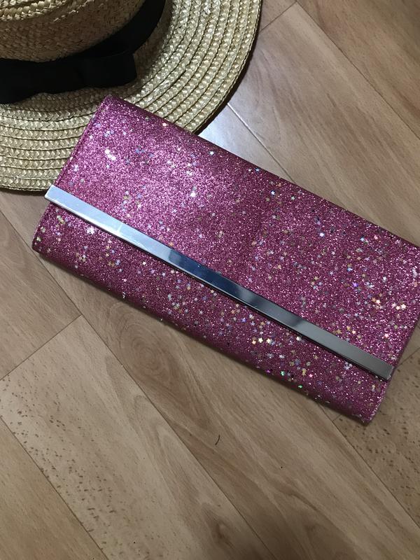 Очень красивый клатч бренда ASOS Цвет розовый, очень красиво переливается еа солнце. Модель идёт без цепочки, носить нужно в руке. Длина 29 см Был в использовании всего 2 раза Немного примят, поэтому такая низкая цена Смотрите все мои объявления, у меня есть очень много крутых вещей. ✅Подписывайтесь на мою страничку, обновление товара еженедельно ✅При покупке 2-х и более вещей, действует система скидок % ✅ Постоянным клиентам дополнительная скидка ✅ Отправка новой почтой или укрпочтой ✅ Оплата на карту Приват Банка ✅ Наложенным платежом отправка по предоплате ⚠️ Возврата нет ( пожалуйста делайте свой выбор осознанно)