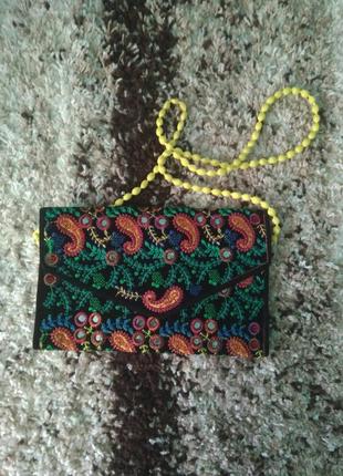 Сумочка велюровая с вышивкой 17х30 см