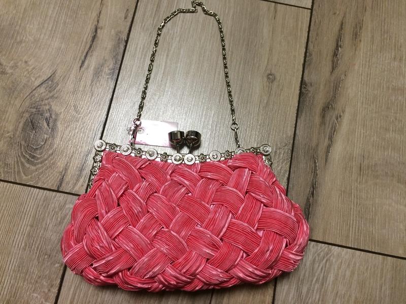 Новый клатч но при хранении есть царапки на фурнитуре размер 21*13 есть 2 цепочки