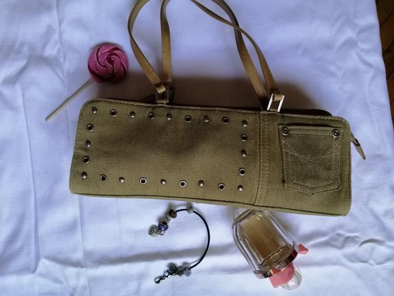 Клатч бежевого цвета с заклёпками. Привезла из Италии. Несмотря на то, что ручки из заменителя кожи, без потертостей, ничего не облезло, никаких признаков носки нет. Состояние как новое. При желании, можно постирать, но вручную . Сзади есть, едва заметное, пятнышко, но думаю, можно отстирать. Ширина -30 см,высота-12см. Несмотря на скромные размеры достаточно вместителен. Кошелёк, телефон, ключи, помада, пилочка, жвачки и, думаю, ещё много всякого, поместятся.