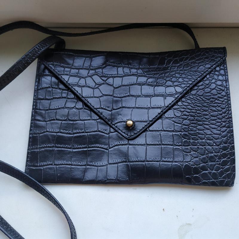 Состояние отличное как новая Ремешок через плечо Прессованная кожа Цвет черный Размер 15 на 21 см, плоская Довжина ремінця 115 см не регулюється