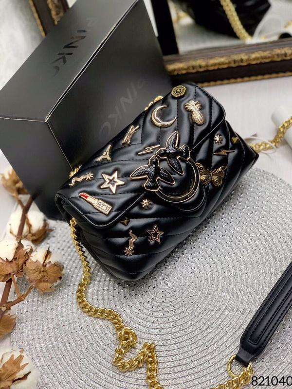 Новинка ❣️❣️❣️❣️ Только у нас Сумка Pinko птичка Кожа Люкс 🔥🔥🔥 Цвет: ❤️чёрная Цена: 2180 грн Материал: натуральная кожа люкс качество 👍👍👍 В комплекте пыльник , коробка пакет ( цепоча-ремешок) фурнитура в золоте , подкладка вся с логотипами - полный Люкс ❗️ Размер: 21/15