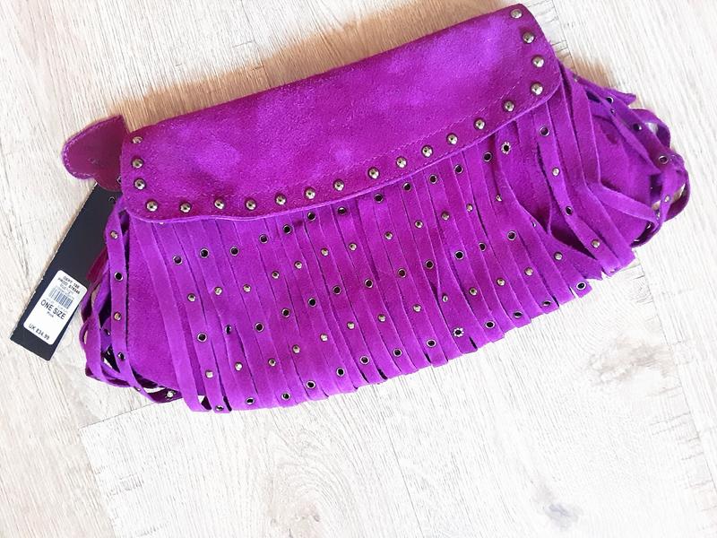 крутой замшевый 100% натуральная кожа клатч цвета фуксии,сток