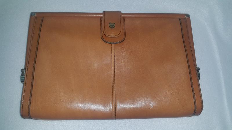 Фирменный и очень качественный клатч светло коричневого цвета длиной-28см и высотой-20см,внутри есть боковое отделение на молнии (18×11),идеальное состояние с высококачественной кожи снаружи и внутри.