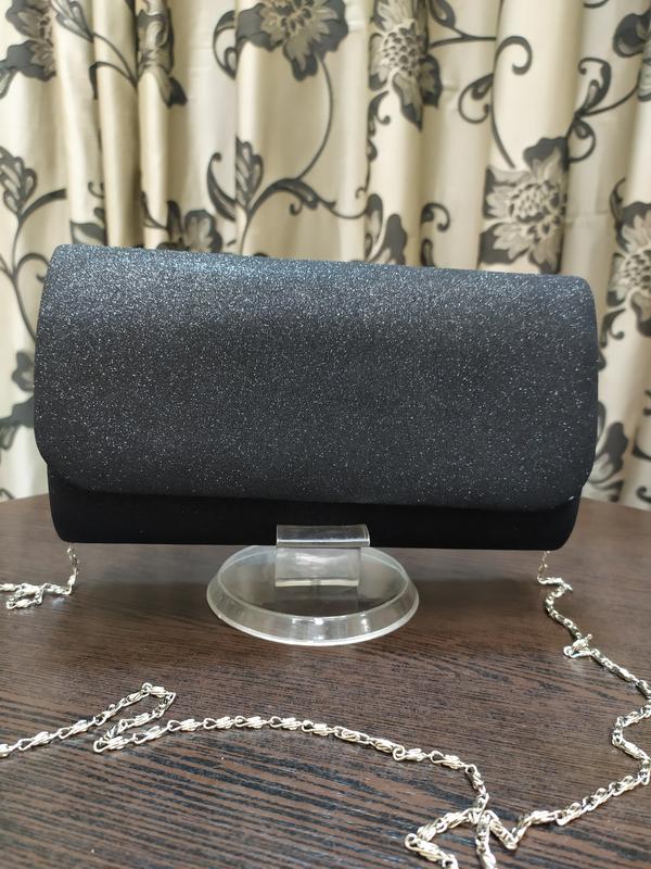 Черный блестящий Клатч с цепочкой. Размер 22*14 см.