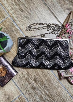 🖤 Якщо вам потрібна ошатна сумочка на вихід або на пару раз - це ідеальний і не витратний варіант. Дуже красиво розшитий бісером, ззаду - атласна тканина. Стан нової. У сумки є довга ланцюжок, яка знімається при необхідності. Бренд Marks and Spencer. 📏 Ширина 20,5; висота 12