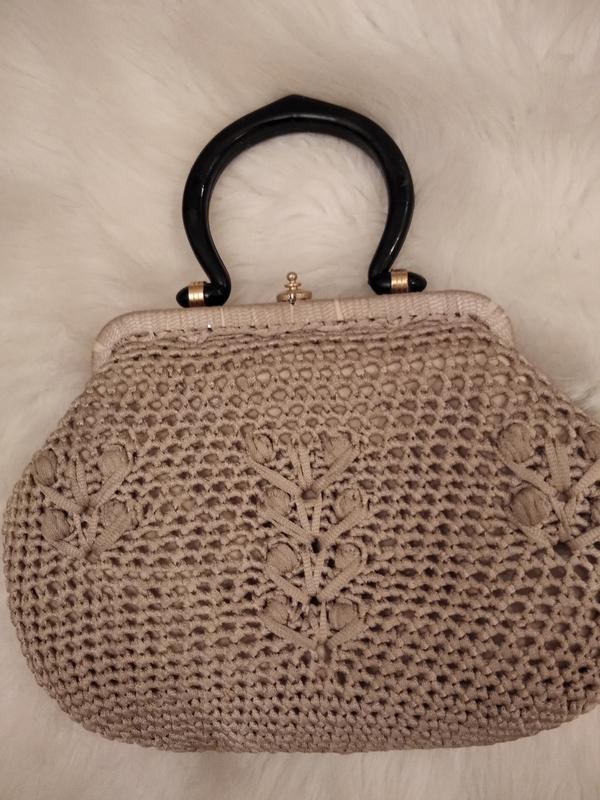 оригинальная, из эластичность шнурка, ручка из пластика, размер 30/20см, бежевый, новая, бирок нет, на подкладке