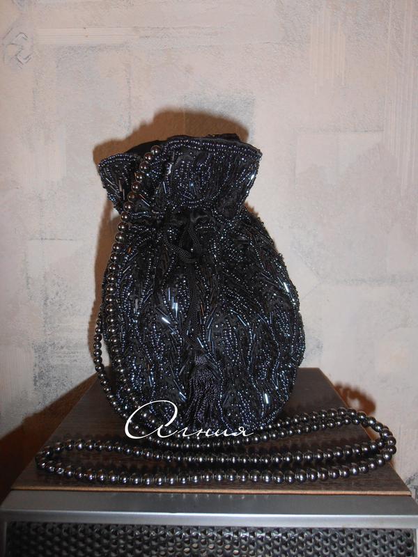 Ручная работа. Основа-натуральный шелк. Шнурок-натур. шелк. Длинна ручки регулируется. Высота 19 см. Дно-17 см.