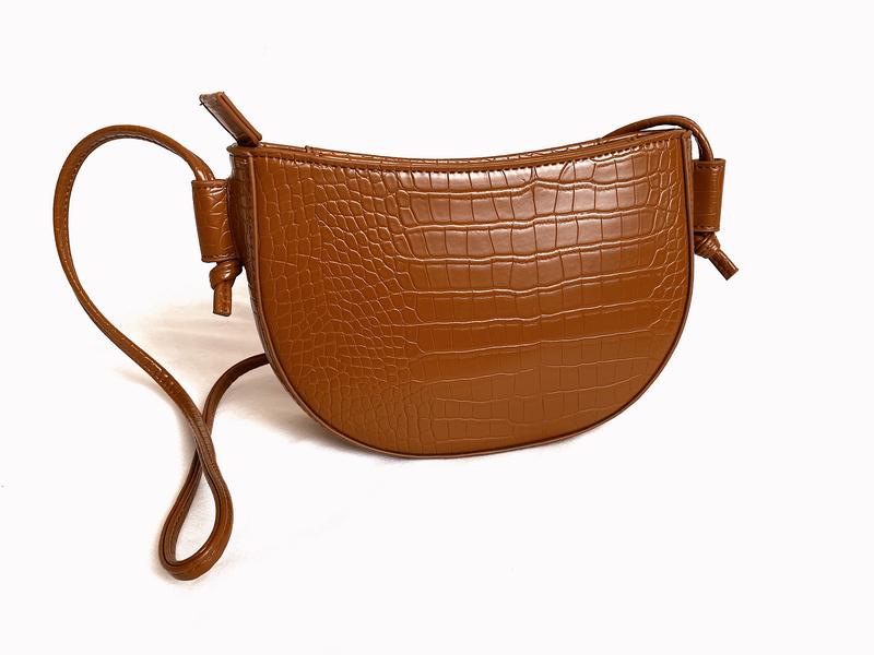 Сумка Арт:2014 brown Стильна сумка на плече з тисненням під крокодила. Додаткова внутрішня кишеня, основна на блискавці. Розміри: 24смх16см Довжина ручки: 100см