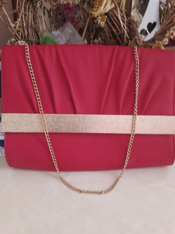 Класнюча сумочка-клатч темно-малинового кольору з ланцюжком..Ширина-24.5см,висота-18см.