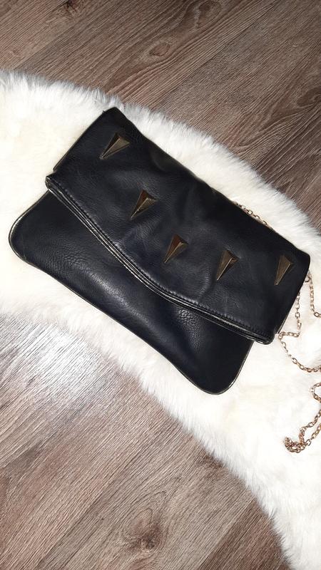 Фирменая сумочка клатч,из качественной эко кожи,можно носить двумя способами,цепочка съёмная,фурнитура золотистого цвета,сумочка складывается пополам,состояние идеальное Бренд urban expressions Размер в сложенном виде 21×30,5 см. длина цепочки 124 см.