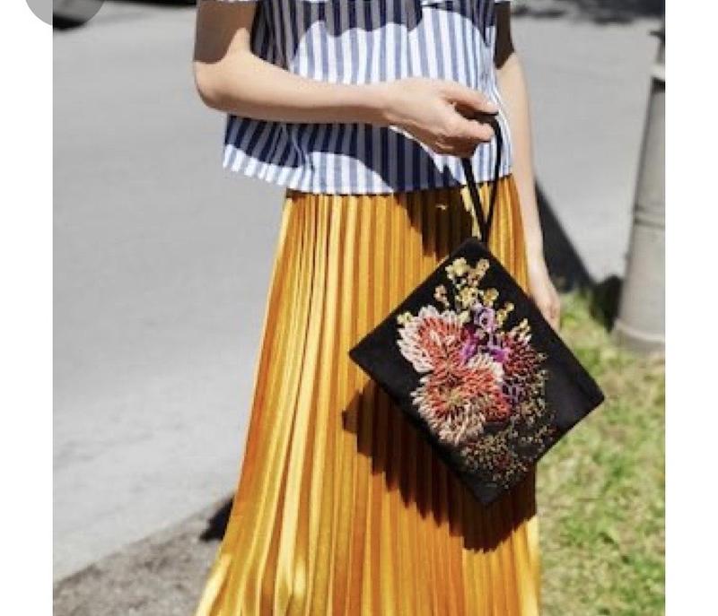 Клач с цветочным принтом. Хороший размер ,вместительный. Немного заедает молния,а так всё супер.