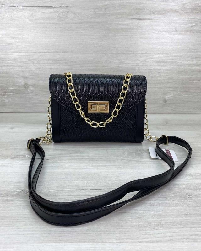 Женская сумка черная Производитель: Украина Код товара: 61606 МАТЕРИАЛ эко-кожа ЦВЕТ черный ЖЕСТКОСТЬ средняя ТИП ЗАСТЕЖКИ клапан ОТДЕЛЕНИЯ 1 отделение ПЛЕЧЕВОЙ РЕМЕНЬ есть ДЛИНА 19 см. ШИРИНА 8 см. ВЫСОТА 15 см.