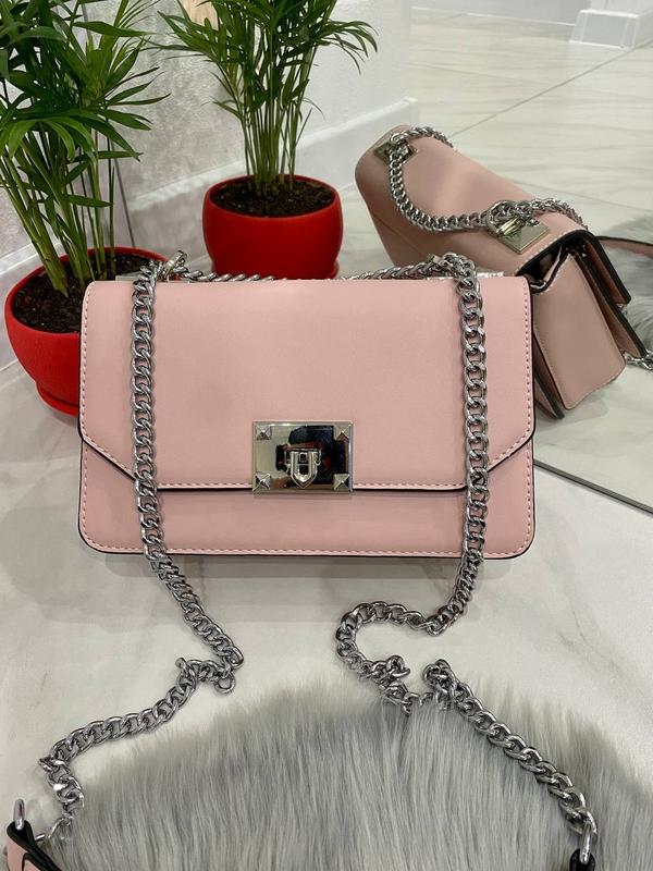 Клатч Vogue на цепочке Фурнитура - серебро, размеры 22*14*8 см, экокожа Отделение на молнии и карманы по бокам Плечевой ремешок-цепочка - 122 см, не регулируется,не съемный Черный, белый, пудра