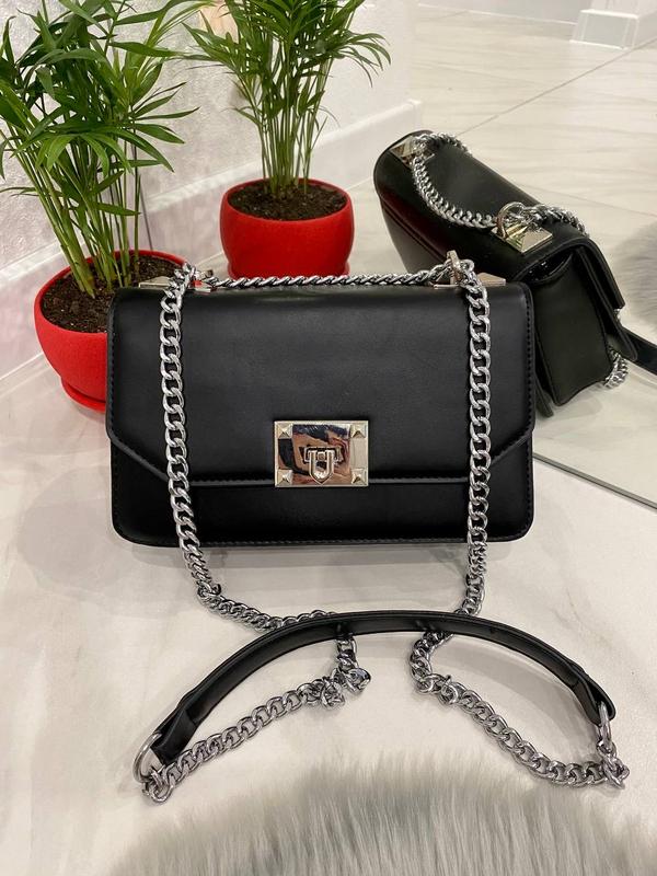 Клатч Vogue на цепочке Фурнитура - серебро, размеры 22*14*8 см, экокожа Отделение на молнии и карманы по бокам Плечевой ремешок-цепочка - 122 см, не регулируется,не съемный Черный, белый, пудра