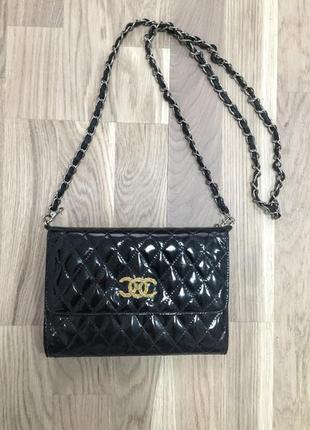 Маленькая Лаковая Сумка-Клатч Ширина 22 см Высота 16 см Длинная ручка с крепежом "карабин" длиной 130 см Отличное состояние Без торга!