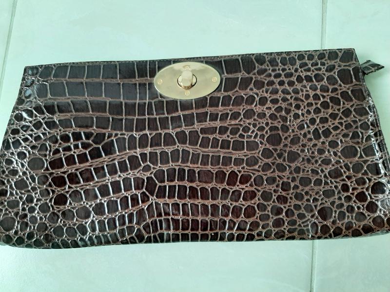 Клатчік выгуливался один раз, слідів шкарпетки немає. Застібається на блискавку і карабинчик. Досить великий.