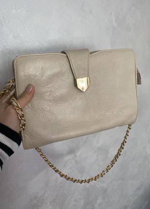 Шкіряний клач бежевого кольорі Стан 7/10 В середині трішки відлеєні боки На ланцюжку