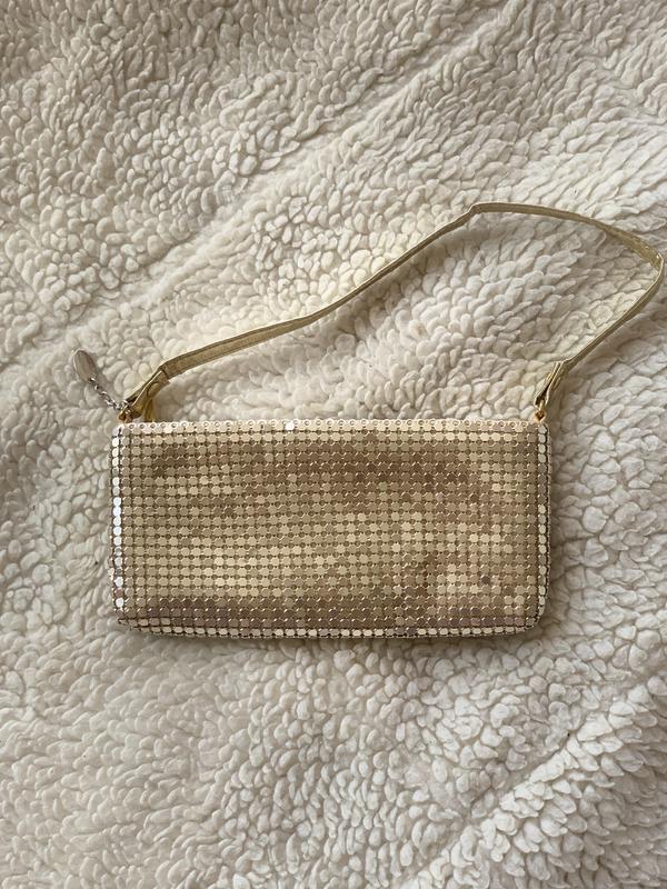 Золотой кошелёк, мягкий На замочке, есть на подкладке след от краски Длина 19 см Высота 9 см