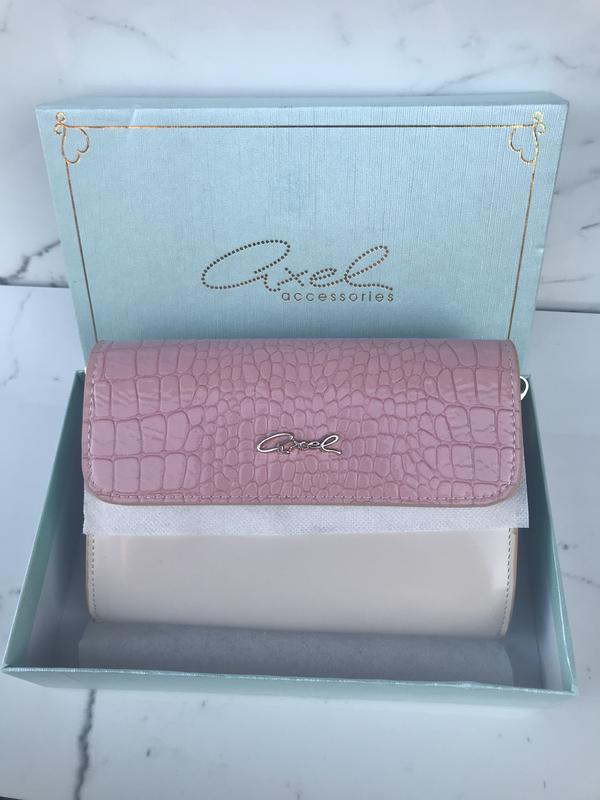 Клатч бежевого, розового и бледно зелёного цветов. На кнопке магните. Длинная ручка на карабинах. Фурнитура золото. В подарочной упаковке. Размеры: 18 см на 13 см и на 4 см.