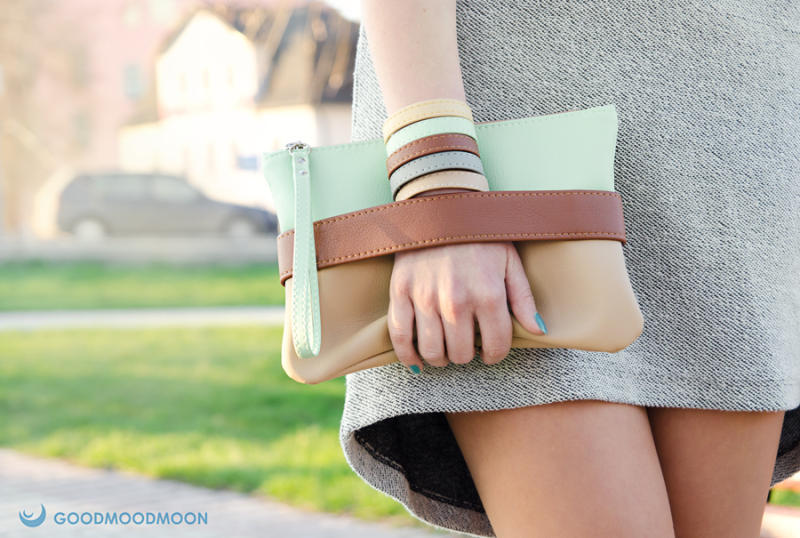 Стильный харизматичный клатч. Авторский дизайн GoodMoodMoon. В комплекте ментоловая ручка через плечо на карабинах, ее длина 115 см. Материал: искусственная кожа. Размер: 24 х 17 см. Внутри клатча текстильная подкладка. Цвет: ментоловый + экрю. Ручка-полоска на выбор: кофейного или бежевого цветов. Ручка пристегивается на кнопках и легко меняется. Поэтому разноцветные ручки можно подбирать под цветовую гамму одежды. Стоимость дополнительной ручки 80 грн.