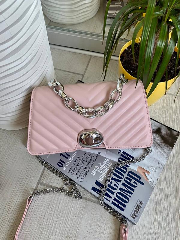 👑 Клатч Izi стьобаний з декоративною ланцюгом ✔️ Фурнітура - срібло, розміри 22*12,5*9 см, екошкіра ✔️ Відділення з кишенькою на блискавці всередині ✔️ Декоративна ланцюг з пластику не знімна ✔️ Плечовий ремінець-ланцюжок - 133 см, знімний ✔️ Чорний, білий, сірий, бежевий, бузковий, рожевий, кава з молоком
