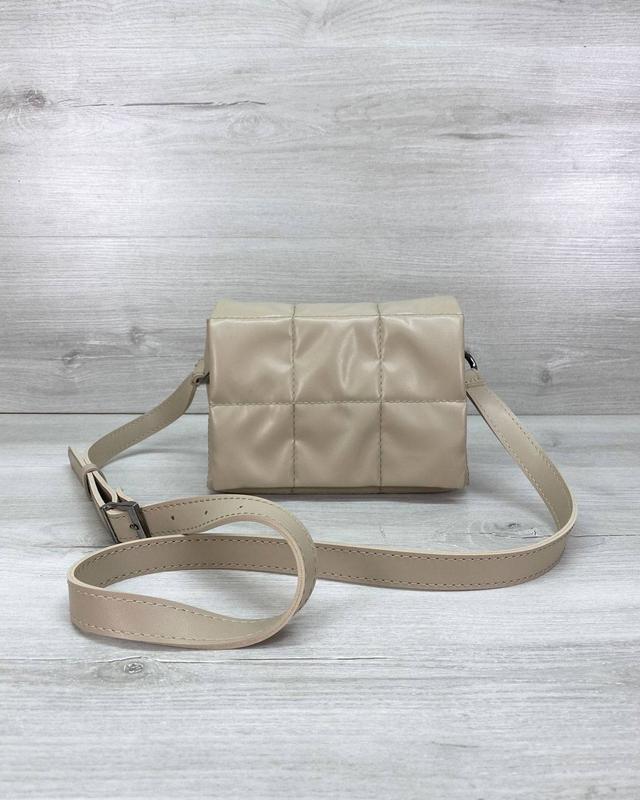 Нова сумка кольору беж. виконана з екошкіри високої якості. Сумка відкривається за допомогою магніту. Має два відділення. Усередині сумка на підкладці. Довжина плечового ременя 110 див. Розміри сумки: довжина 19 див., ширина 8 см, висота 14 див.