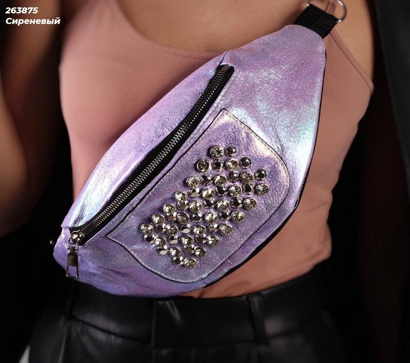 Клатч-бананка, одно отделение на молнии, украшена камнями, которые надёжно закреплены. Экокожа с лазерным напылением. Размер 16/26/9.