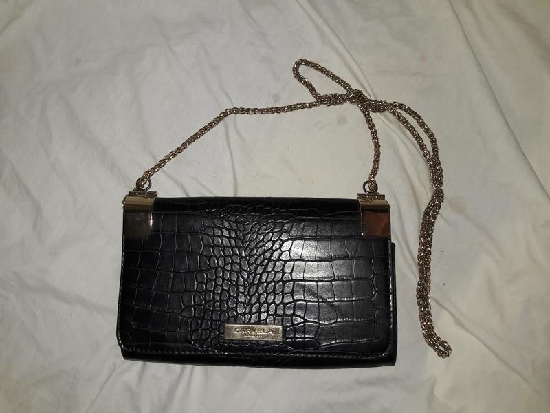 Стильная сумочка на цепочке..золотого цвета эко кожа!но плотный материал. подкладка грязновата! золотая надпись поцарапана ! сумка не новая, носилась! но без дефектов и потертостей. в подарок при покупке лжбой вещи!