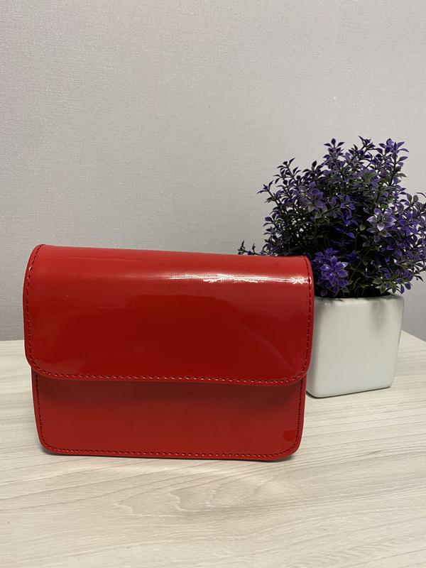 Лакована поясна сумка червоного кольору. Можна використовувати як клатч. Була у використанні лише один раз. Продаю через те, що не ношу. Стан - ідеальний. Розмір: 16*12*3. Ремінь (99 см) додається